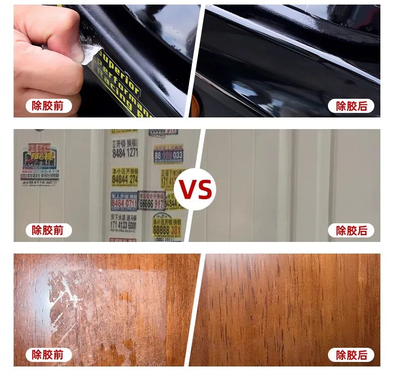 不留残痕:这款不干胶清洗剂的配方经过针对性调校,靠乙酸乙酯、乙酸丁酯这类有机溶剂,既能清除干净胶质,又不能伤家具。清洁后不仅没有胶印残留,还能保持物品原本的光洁度,不会出现刮花、发白、变色等问题。