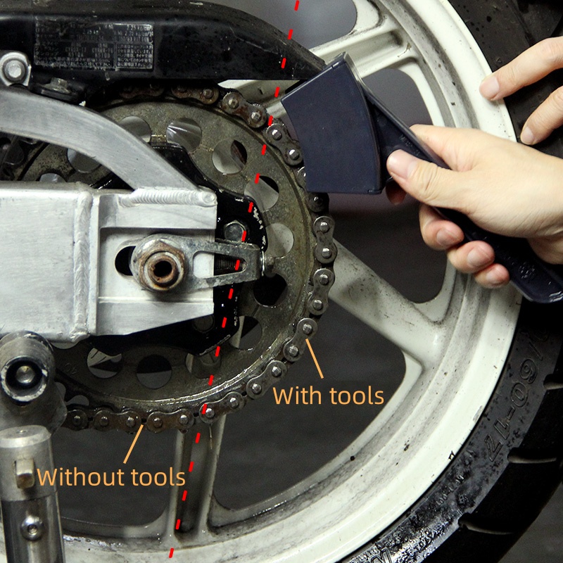 --Easy to Use: The concave-shaped brush head consists of a brush shell (engineering plastic) and bristles. The concave brush head can be wrapped around the chain in a semi-enclosed way for cleaning, making operation convenient and simple while reducing cleaner usage.
