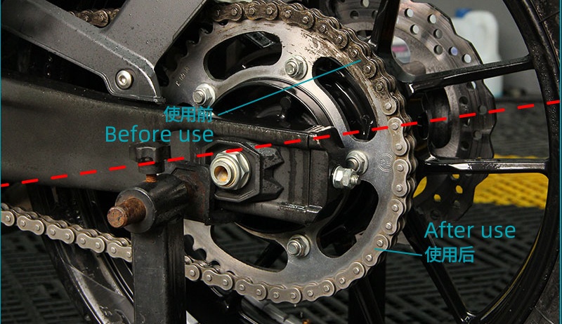 With strong penetration, it allows stubborn oil stains to fall off on their own, can dissolve asphalt, oil, wax, etc. on the chain, without corroding the chain or damaging the oil seal. Water-free, quickly removes oil stains.
