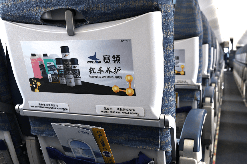 Cylion 赛领摩托车养护系列产品荣登飞机舱广告